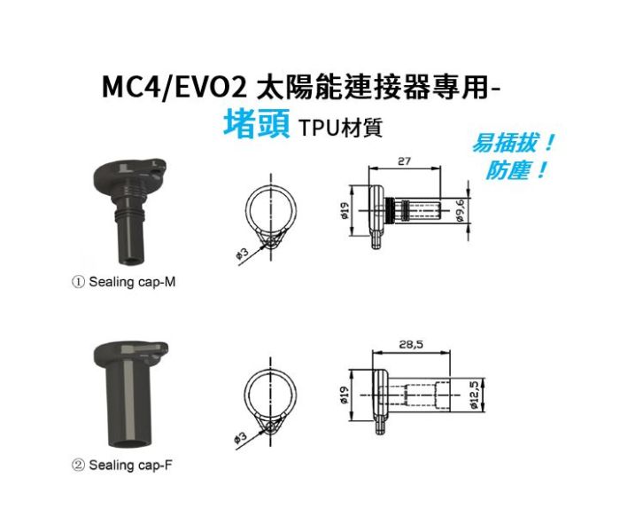 MC4/EVO2 太陽能連接器專用-堵頭 TPU材質